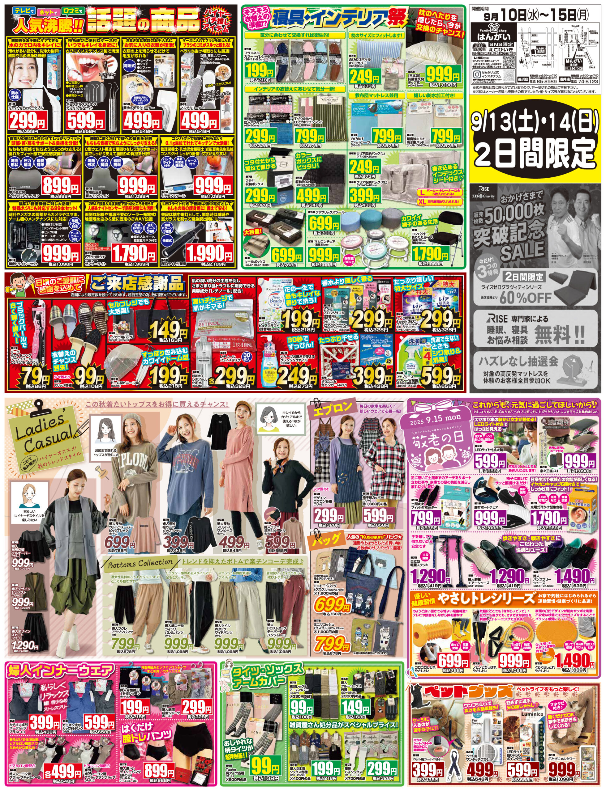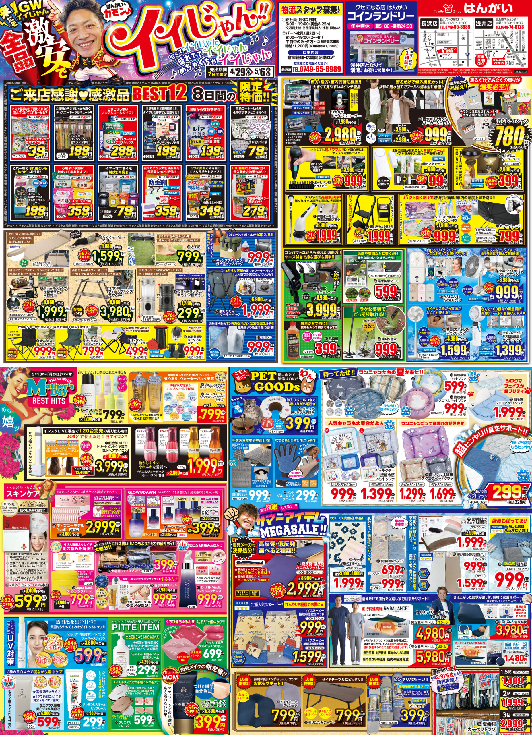 はんがいは滋賀県長浜市2店舗にある衣料品・寝具・雑貨まで各店常時7万点以上の商品を扱うお店です。