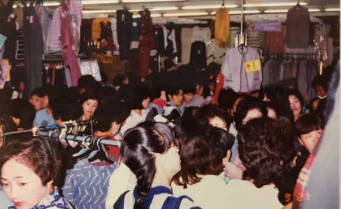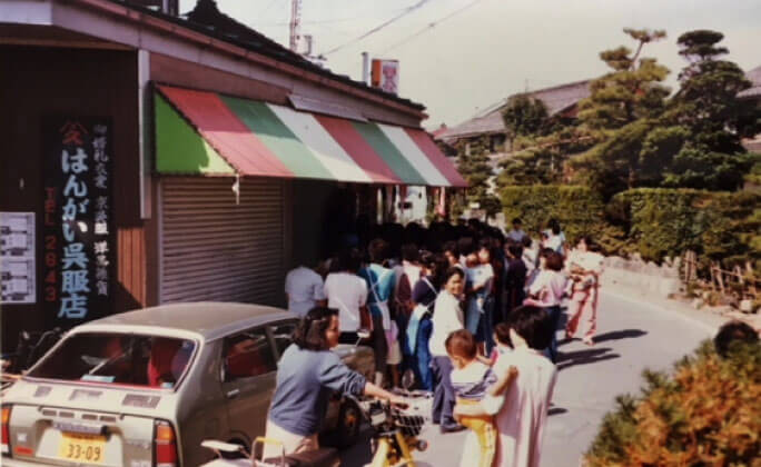 戦争で焼けだされ、裸一貫故郷の虎姫で昭和23年呉服店をはじめる。